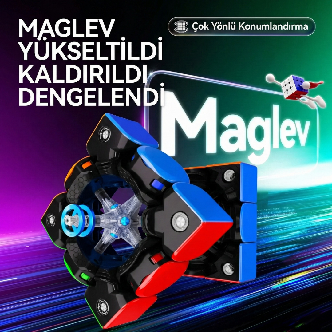GAN V100 3x3, orta segmentte konumlanan; hız, stabilite ve ayar kolaylığını dengeli biçimde bir araya getiren modern bir manyetik speed küptür. 55 mm yarış boyutundaki kompakt yapısı ve yaklaşık 64 gramlık süper hafif ağırlığı sayesinde uzun antrenmanlarda bile el yorgunluğunu minimumda tutar. Parça mıknatısları her dönüşte net ve tatmin edici bir “klik” hissi sunarken, MagLev sistemi klasik yay sürtünmesini ortadan kaldırarak daha akıcı, sessiz ve düşük dirençli bir dönüş karakteri sağlar.