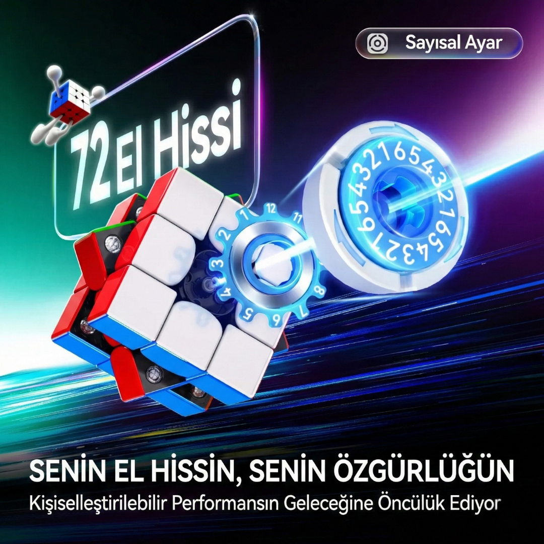 Köşeden çekirdeğe uzanan çekirdek mıknatıslar, yüksek TPS’te katmanların hızlıca hizalanmasına yardımcı olur; bu da daha az kilitlenme ve daha temiz algoritma akışı anlamına gelir. UV kaplamalı dış yüzey, parlak görünümün yanında yüksek tutuş sağlayarak kontrolü artırır ve uzun süreli kullanımda dayanıklılığını korur. 72 farklı gerginlik ve sıkıştırma kombinasyonu sayesinde küpü yumuşak–hızlı ya da sert–kontrollü hissiyat arasında kolayca ayarlamak mümkündür.